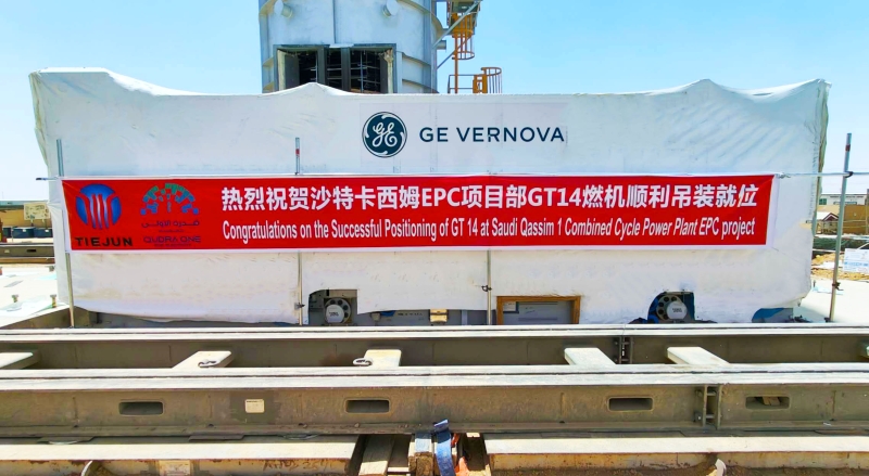 沙特時間8月4日,沙特卡西姆EPC項目14號燃機順利吊裝就位。